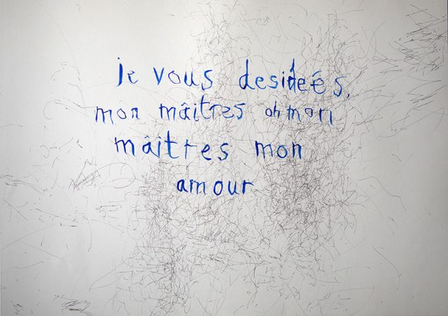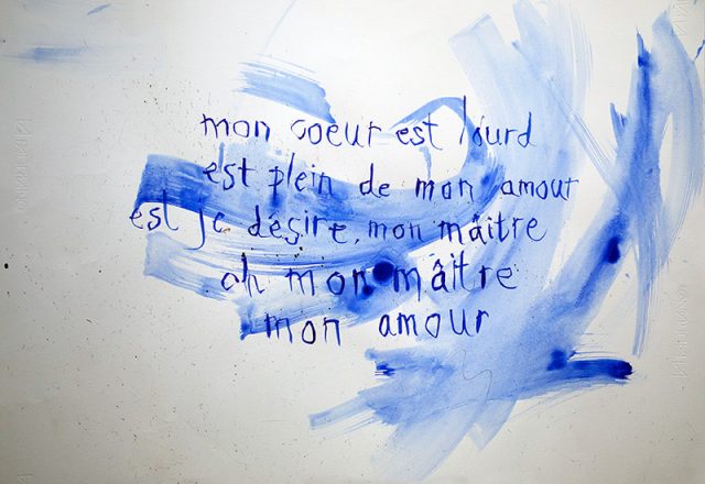 I particularly liked the process in the above artwork – where the artist tied pens to the branches of a tree and let the movement of the tree move the pens / create the marks on the page. They also added the text using a paint brush held in their mouth.