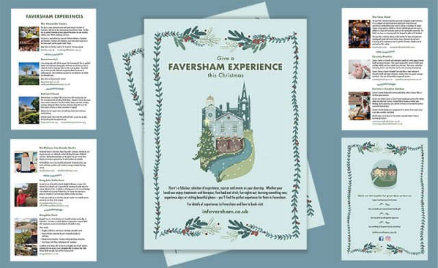The nice thing about this project is the quality of photographs, illustrations and that the brief was clear. The illustrations reflect the pretty architecture in Faversham. Colours were chosen that suited the look and feel of the job. Inside, the pages needed to be clear and uncluttered, each offering was designed to be similar, so there is cohesion with the booklet.