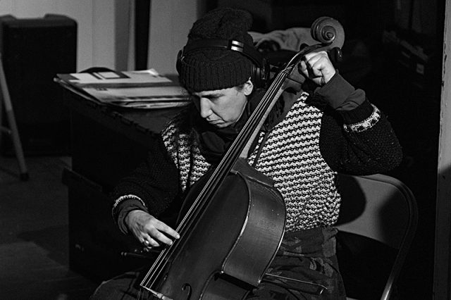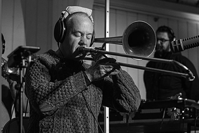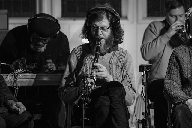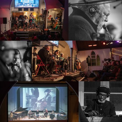 Photos from two all-star ensembles who met for a live real-time audio lip-sync trans-Atlantic performance one Saturday in December. The performances took place at The Hot Tin, Faversham and at Roulette, Brooklyn, New York.